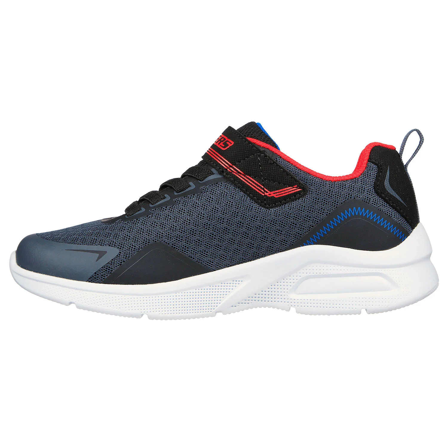 Add some extra comfy cushioning to a sporty style with Skechers Microspec Max Boys’ Running Shoes. The slip-on features a breathable athletic mesh and synthetic upper with stretch laces and a visible Skech-Air® air-cushioned midsole.