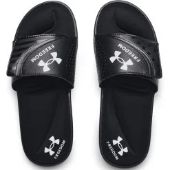 The memory foam not only feels great, but also helps eliminate pressure on your feet after you work out. Adjustable synthetic strap featuring UA Freedom logo with soft foam underneath for added comfort. Footbed built with two layers of Performance 4D Foam® for unprecedented comfort.